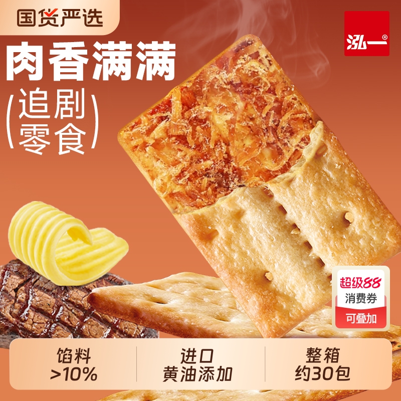 泓一牛肉馅夹心饼干薄脆咸味网红追剧解馋零食休闲食品礼盒整箱